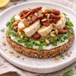 Bekijk het complete recept met bereiding en ingrediëntenlijst: Beschuit met gegrilde kip en zongedroogde tomaat