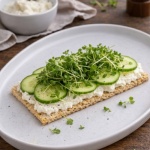 Bekijk het complete recept met bereiding en ingrediëntenlijst: Cracker met huttenkase en komkommer